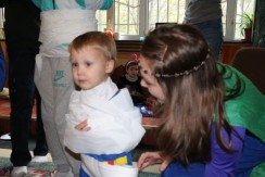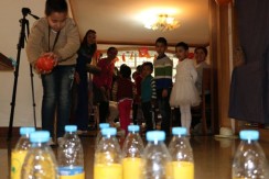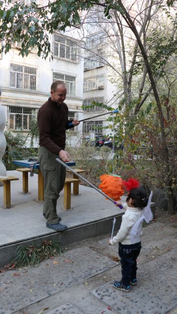 That was our celebration this year for Halloween. We invited our neighbors and were so excited to host 10 kids and their moms. We explained how OUR family celebrates Halloween and why it is different than what they might see in the movies. We started off with a piñata which everyone thoroughly enjoyed and then headed up to our apartment (yep all of us in our little apartment!). I had baked 3 mini loaves of banana bread, 7 loaves of pumpkin bread, 3 dozen cookies, and then had naan, fruit and nuts. We played games that represented different fears that we need not have. One was a spiderweb maze where we mentioned that we do not need to fear sickness. Another was a monster bean bag toss where we do not need to fear bad dreams. And the mummy wrap game explaining that we do not need to fear death. We then added pumpkin bowling and trick or treating (to each door in our apartment) just for fun.
